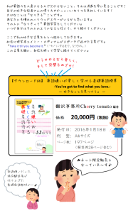 英語教室Cherry tomato 城東区 蒲生四丁目駅 徒歩3分。野江駅 徒歩5分。おとな向けと小学生向けの英語教室を開講中! 基礎の文法から英会話に強くなる!個別指導でアットホームな英語教室です。大人と小学生。講師は現役翻訳者。